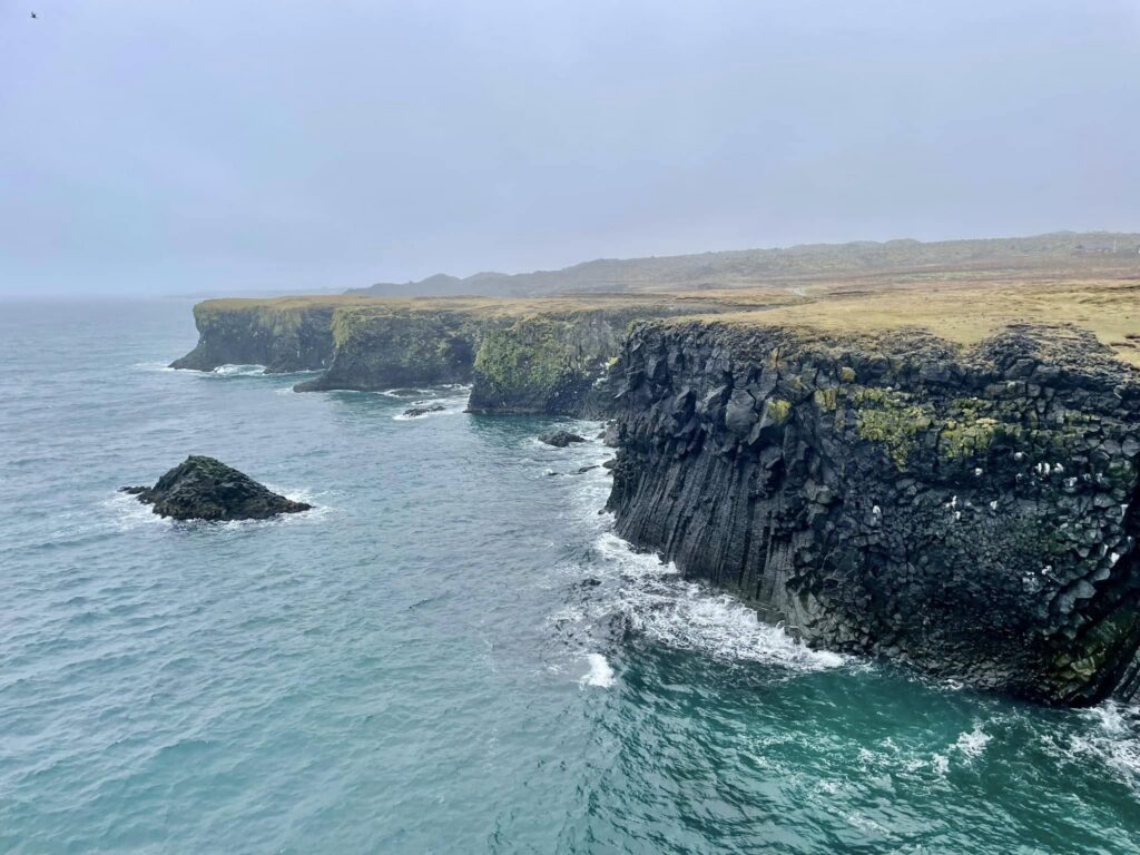 First on our stop were the First on our stop were the Gerðuberg Cliffs which are a massive wall of geometric basalt columns that look so perfectly symmetrical they are often mistaken for a man-made fortress. Located on the southern edge of the Snæfellsnes Peninsula, these cliffs were formed thousands of years ago when a river of basaltic lava cooled rapidly and evenly, causing the rock to contract into hundreds of vertical, hexagonal pillars. which are a massive wall of geometric basalt columns that look so perfectly symmetrical they are often mistaken for a man-made fortress. Located on the southern edge of the Snæfellsnes Peninsula, these cliffs were formed thousands of years ago when a river of basaltic lava cooled rapidly and evenly, causing the rock to contract into hundreds of vertical, hexagonal pillars.