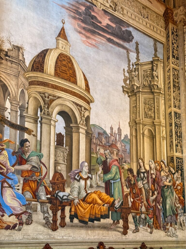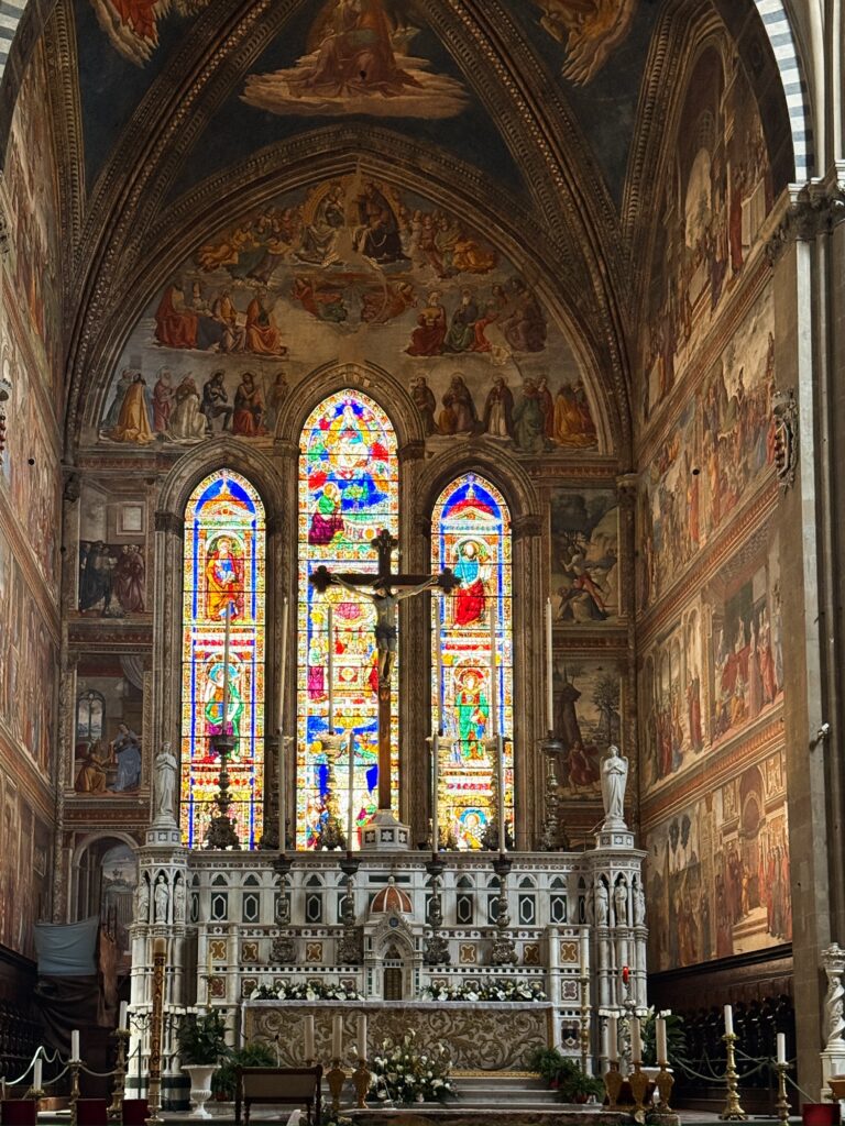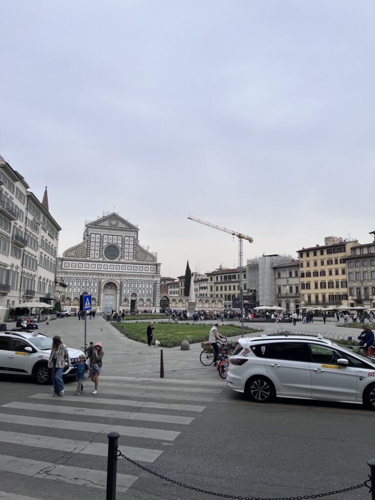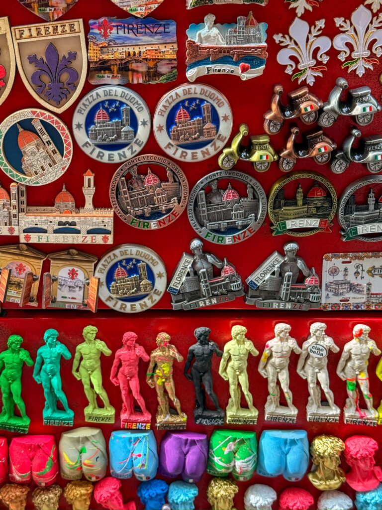 Immediately we could feel a different energy in Florence than in Rome. While Rome is full of tourists, in most places the streets and sidewalks are wide and able to accommodate the crowds. In Florence, the narrow irregular streets get full quickly, cars can only drive one way on most streets, and it’s all too easy to take a wrong step off the edge of the sidewalk or on a wayward cobblestone. At the same time, there is a vibrant sense of life and creativity all around, a meeting between the Renaissance and modern life.