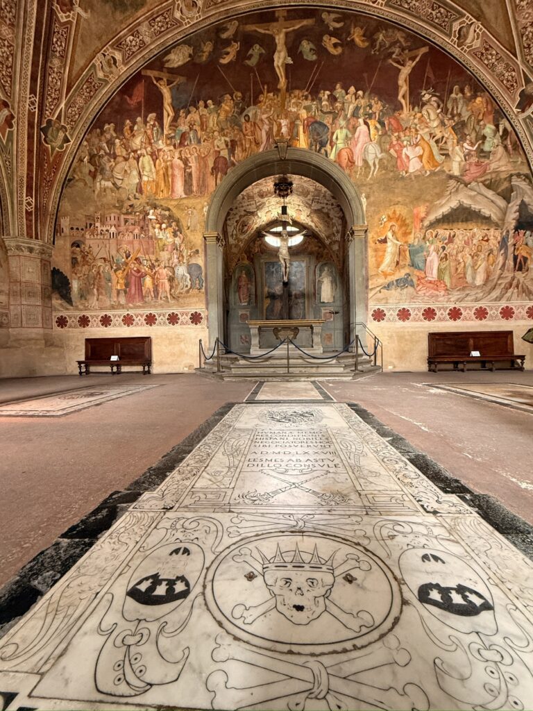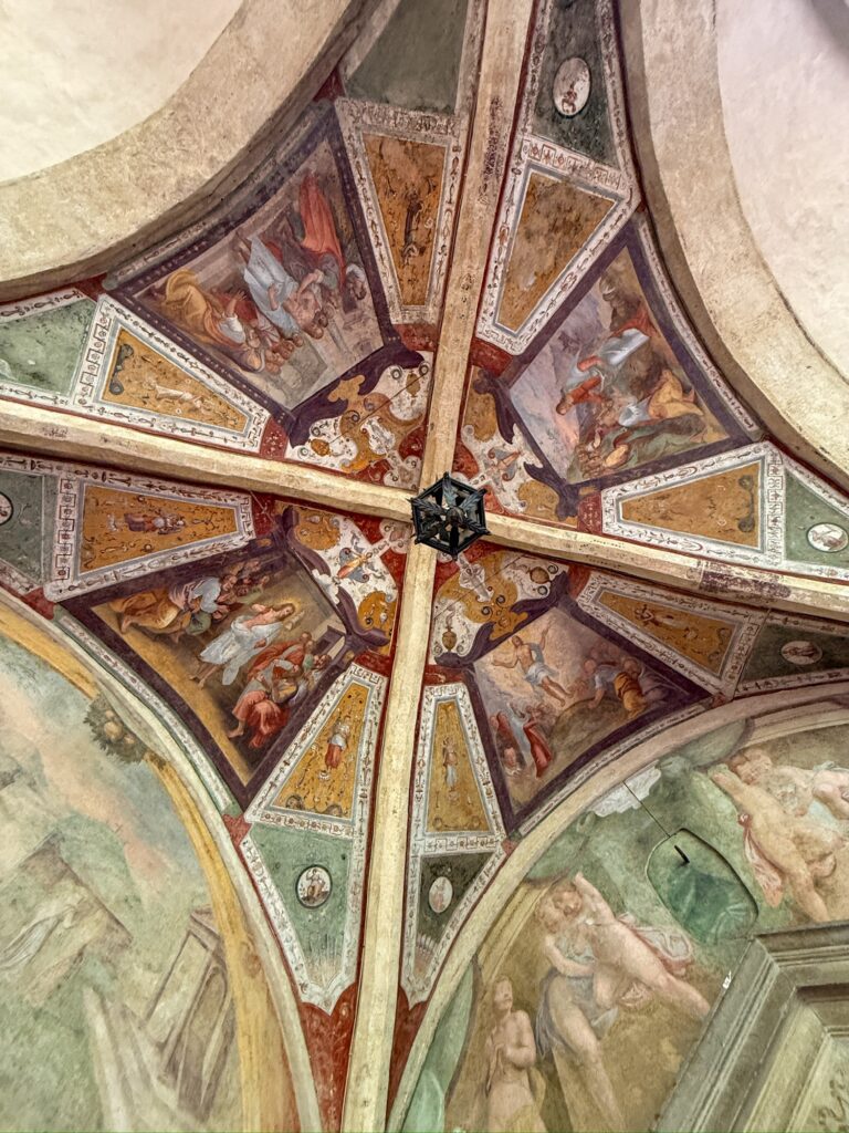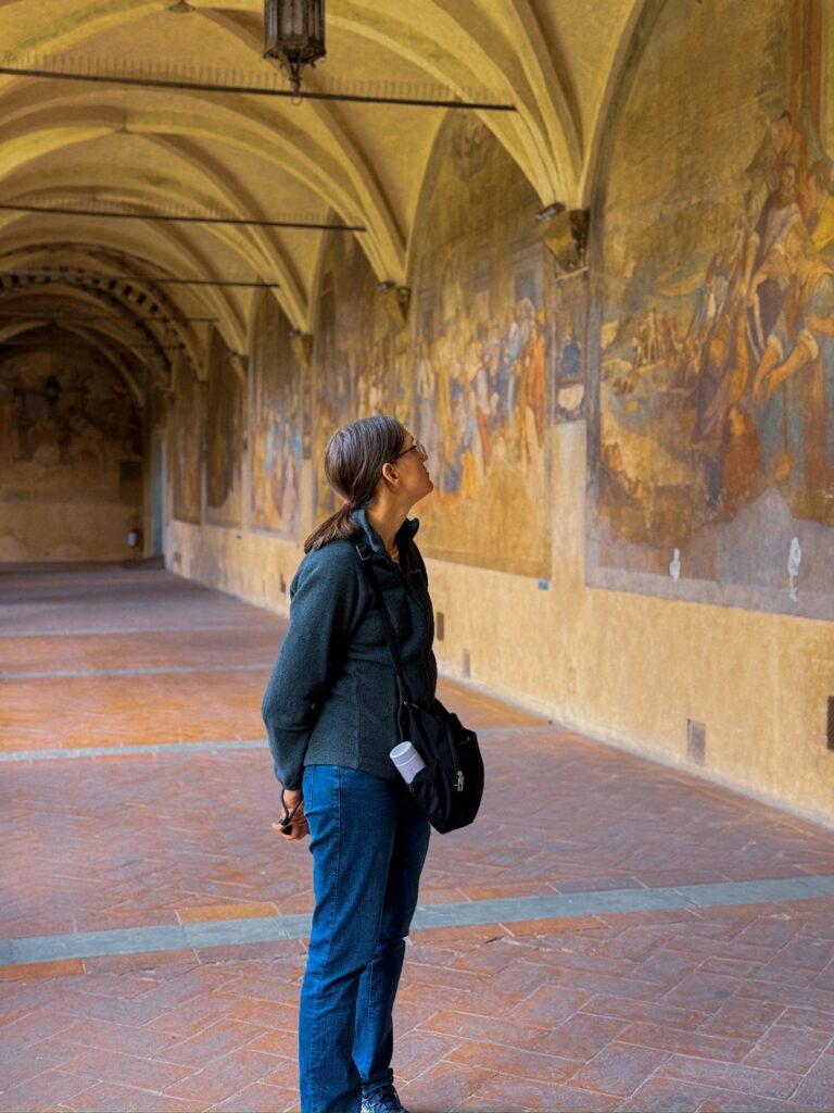 The AirBnB owner was very friendly, meeting us at the house to let us in and introducing it to us. The house is over 1000 years old, and was once connected to other units in the row houses. Galileo Galilei once lived in the apartment upstairs and one unit over, commemorated by paintings on the facade of that house. While the inside was tastefully renovated with a modern kitchen and bathroom, there was an undeniable sense of age and history. No wall was straight and the floor sloped and dipped under the vinyl laminate boards. Out the back window was a view of a cute little garden although we didn’t have access to it.