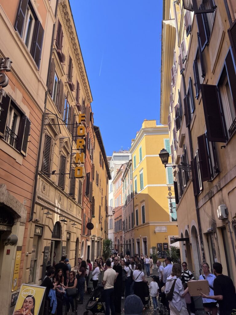 In Italy, the platform for trains is usually announced about 15 minutes before the train arrives. In a station the size of Rome Termini with 32 platforms, that time frame is anxiety inducing. We stood in front of the departure board watching it refresh again, again, as 8:00am passed, then 8:05, then 8:10. We went through the ticket check to the other side to be closer to the platforms. Still nothing. Finally, at 8:15, a number popped up – 35 minute delay. With a sigh, we went off to find a place to sit and wait.