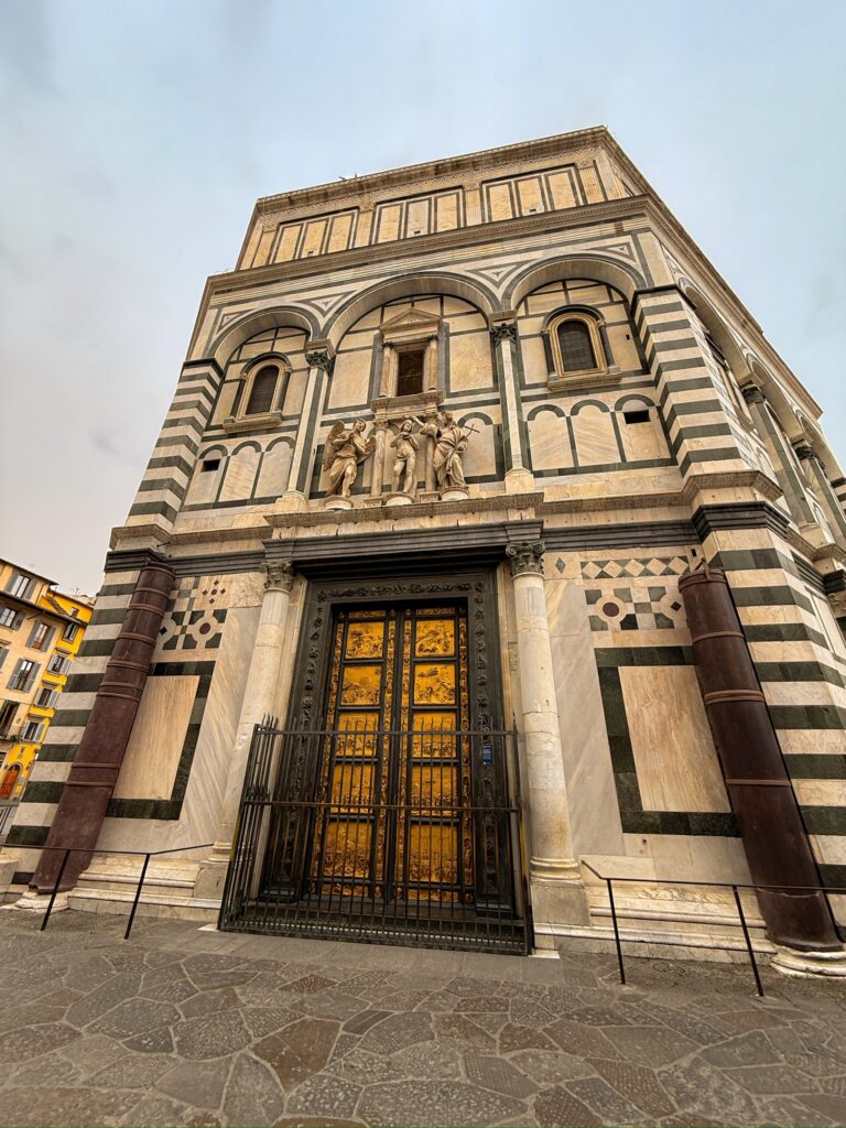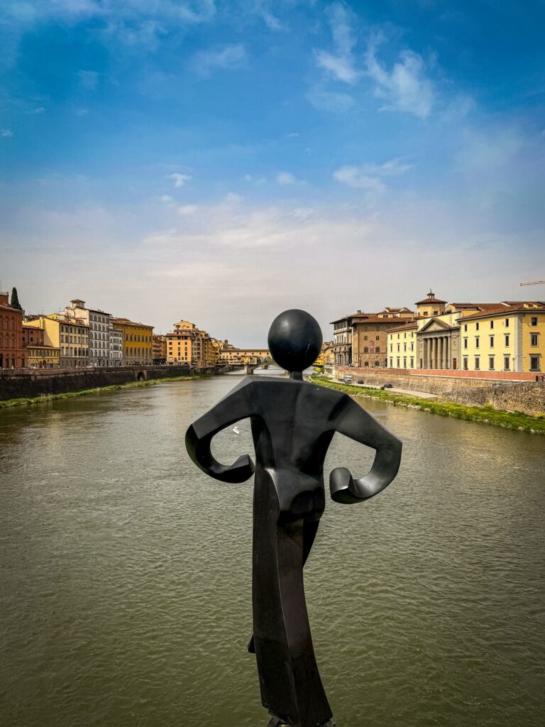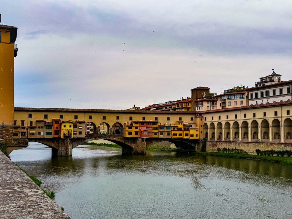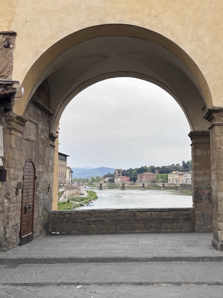 Since our Air BnB was located just up the hill from the bridge Ponte Vecchio, we started our day by crossing it into the center of Florence. The only bridge across the river not destroyed in WWII, it is known for the shops lining it which now house jewelers, art dealers, and souvenir sellers. Before 8am, the shops were just barely starting to open and the majority of people on the bridge were locals hurrying across. We took a few photos and continued onward.