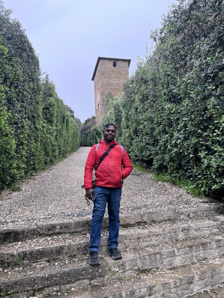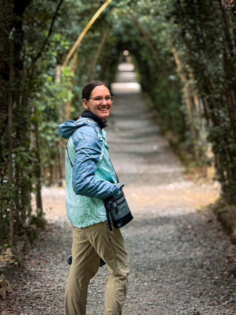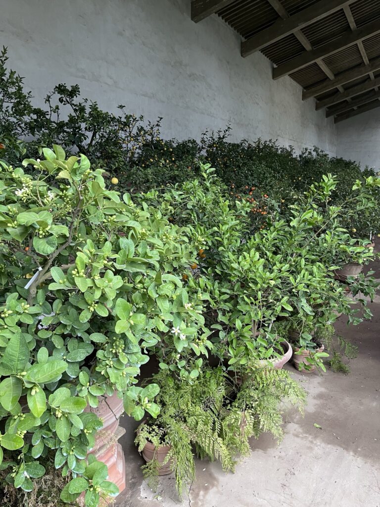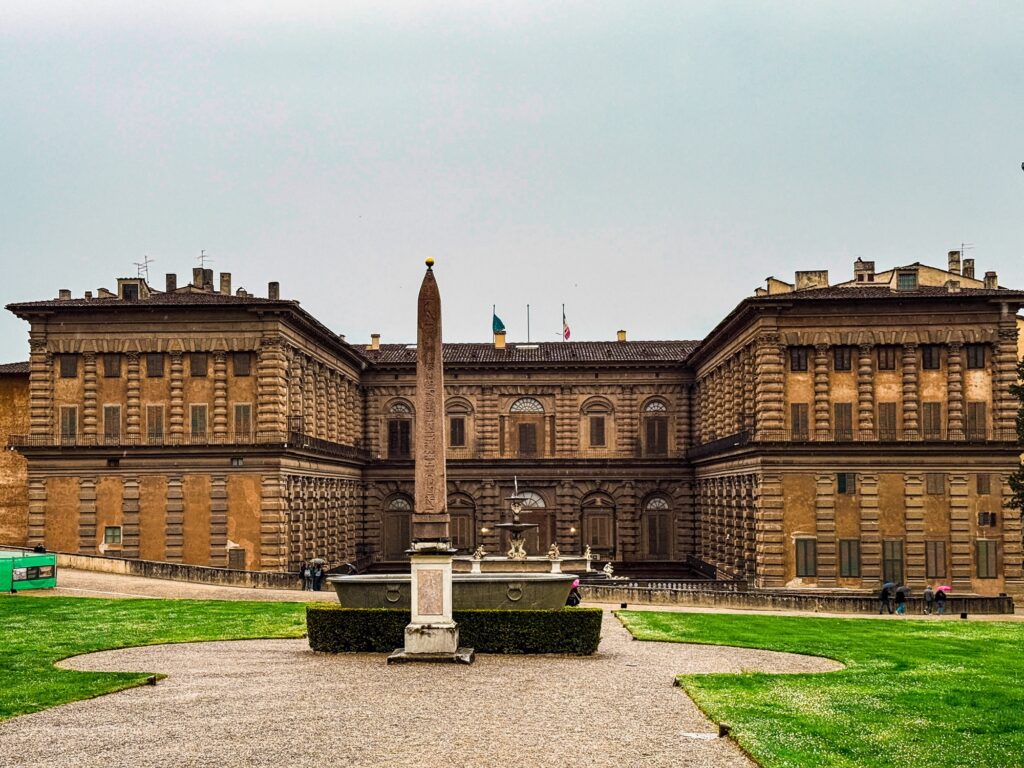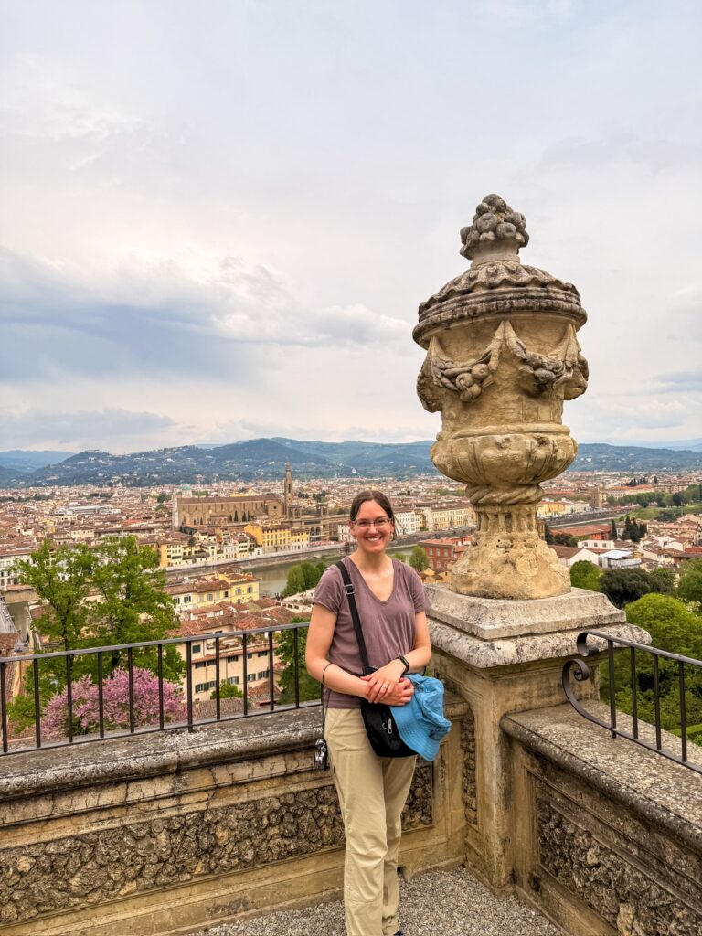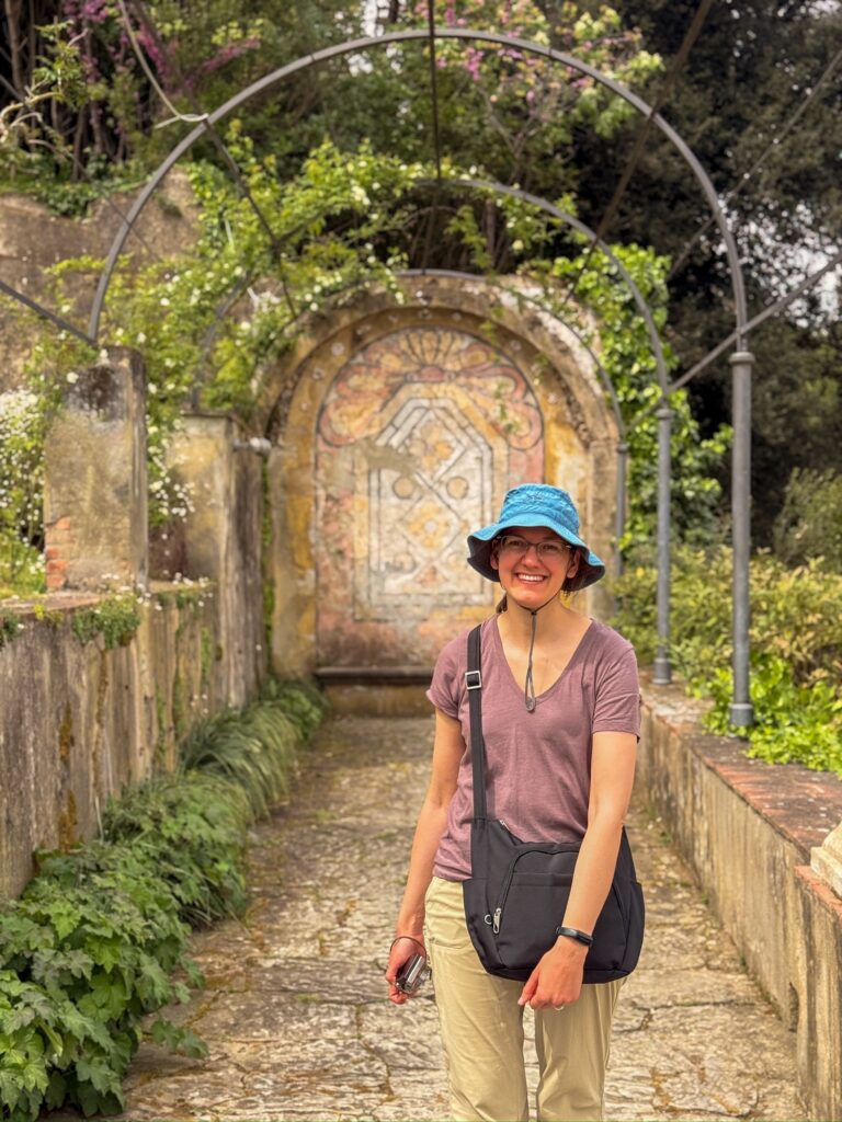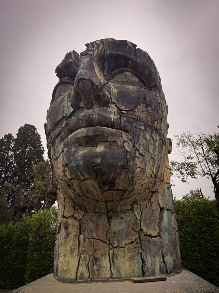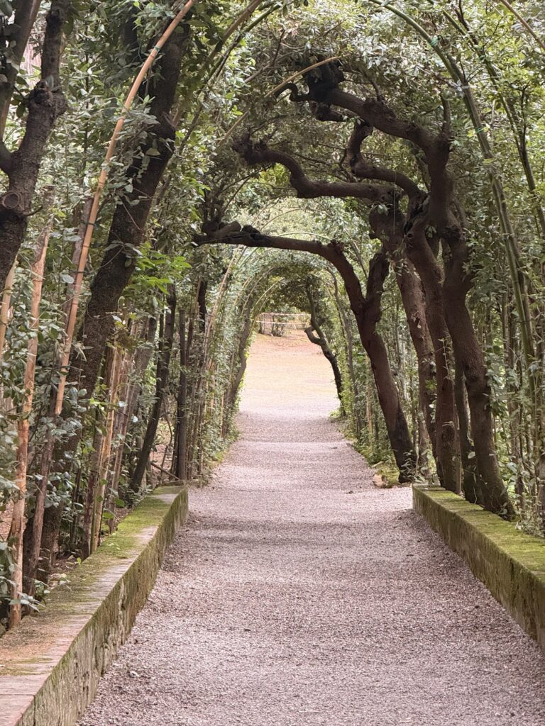 Our reservation for the larger Boboli Gardens was at 4pm in the afternoon. Rain was in the forecast, so we grabbed our rain jackets and umbrellas. Conveniently, there was a garden entrance just a 5 minute walk up the hill from us. As we passed through, the first drops of rain were starting to fall. Before long it was coming down steadily. Between the rain, many of the fountains being shut for repair, and a feeling that we were out of season for most flowers, it was a bit of a disappointing walk. We did enjoy the orangery and had fun taking photos in the hedges, which kept off some of the heaviest moments of rain.