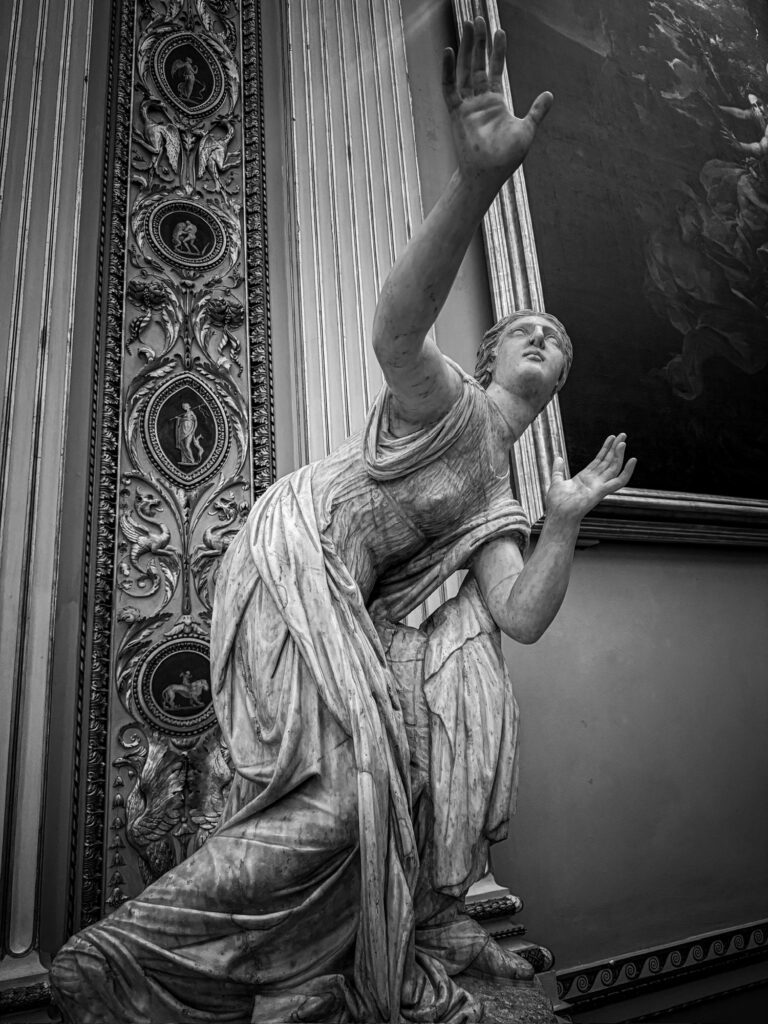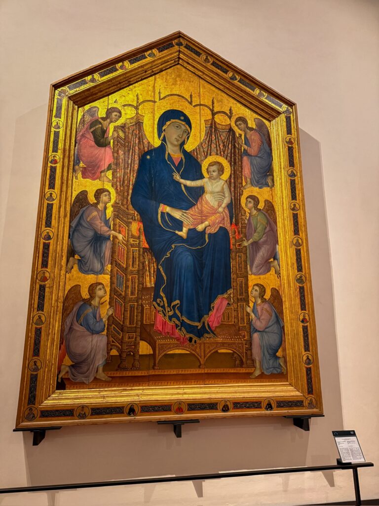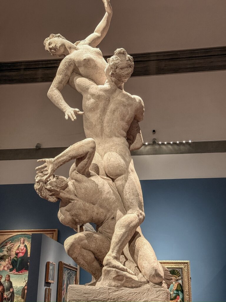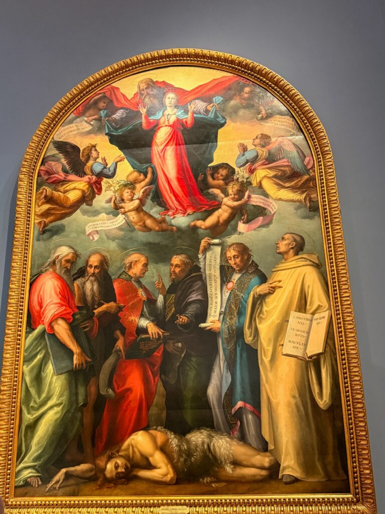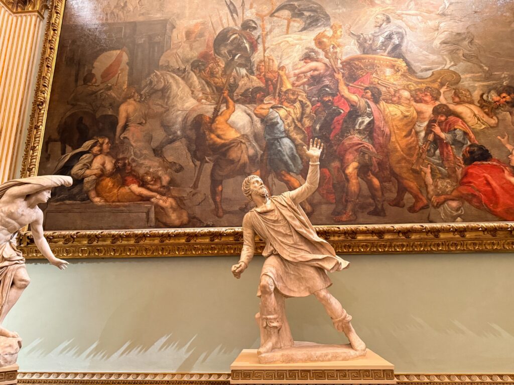 The inside of the museum was very crowded and confusing. I had downloaded an unofficial guided tour, but the order of the rooms had been changed and I was never able to properly align it. An official audio guide would probably have been the better choice for this museum. The gallery is arranged with a long corridor and the art is in rooms off to the side. While they have done the best they can given the buildings layout, it was harder than the Vatican museum to navigate and felt more crowded. At one point halfway through the first floor I lost Mervin completely. Phone connection was terrible inside the building, so our messages and calls weren’t even connecting. Thankfully I finally found him again at the end of the first floor!