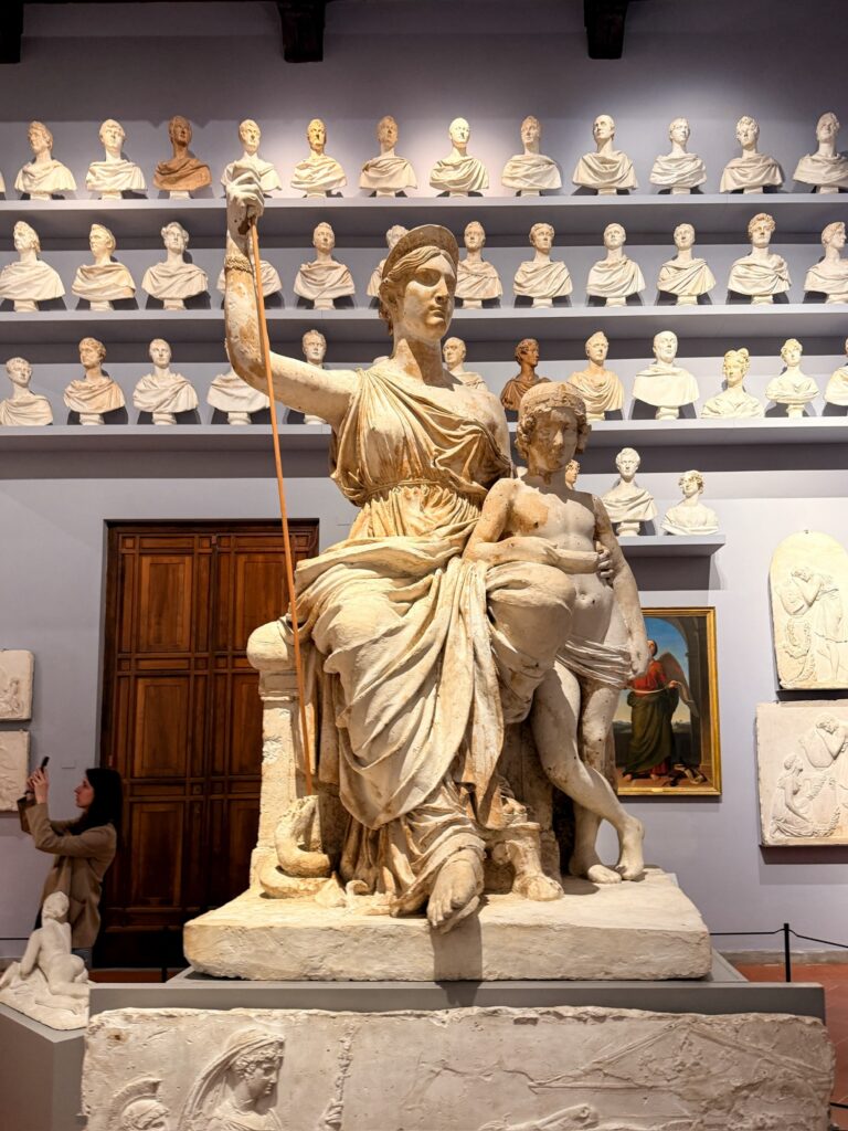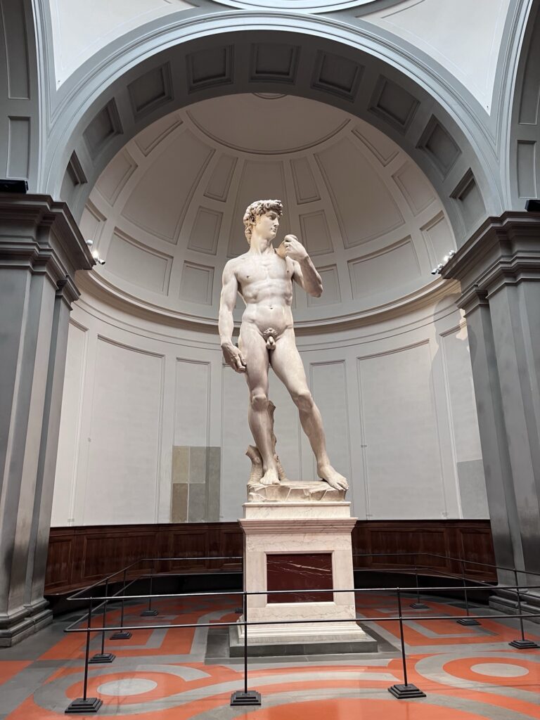 Once the museum opened, we went through the standard procedure of ticket check, back scan, ticket check, and then we were through. Following advice we’d seen online, we went straight to Michaelangelo’s Statue of David without pausing at the other galleries. The strategy paid off. We had a good five minutes to admire the statue and take photos with only a handful of other people around.