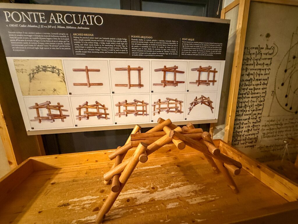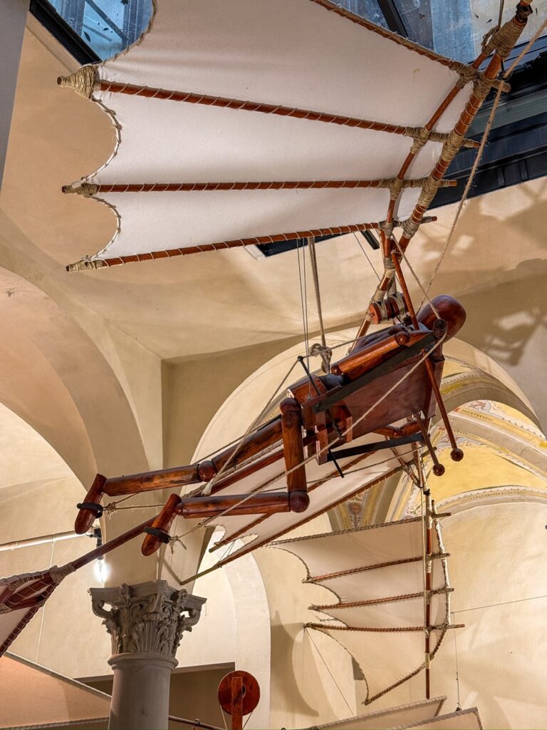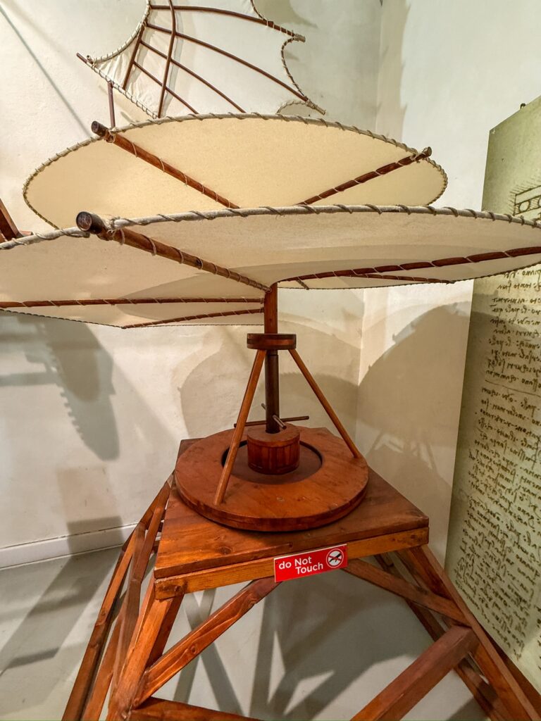 After the Galleria dell’Academia, we planned to go to a Leonardo Davinchi Interactive museum we had seen on Google Maps. However, it turned out that the tickets were timed entry and the earliest available slot was 5:30pm. Since that wasn’t feasible for us, we left and took another look at the map for an alternative. Mervin noticed that there was a second Leonardo Davinchi museum just around the corner. It was a bit hidden away in an alley and we had no problem getting tickets. It was very hands-on in a wood block try-it-yourself kind of way for kids, and while I’m sure it was nowhere near as fancy as the “interactive” museum we had a lot of fun learning about the various inventions.