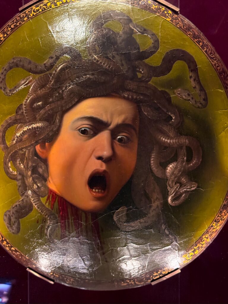 For the most part we were able to see the main pieces we wanted to see. The chronological order of the art to show the evolution over time was interesting, but after the Vatican museum and several days of church visits it all started to blur together. I did really enjoy the gallery of artists self portraits. And even as I was feeling exhausted toward the end, the Caravaggio galleries and especially the paintings by Gherado delle Notti stopped me in my tracks to admire the incredible understanding of light sources, shadows, and the lively detail of each scene.