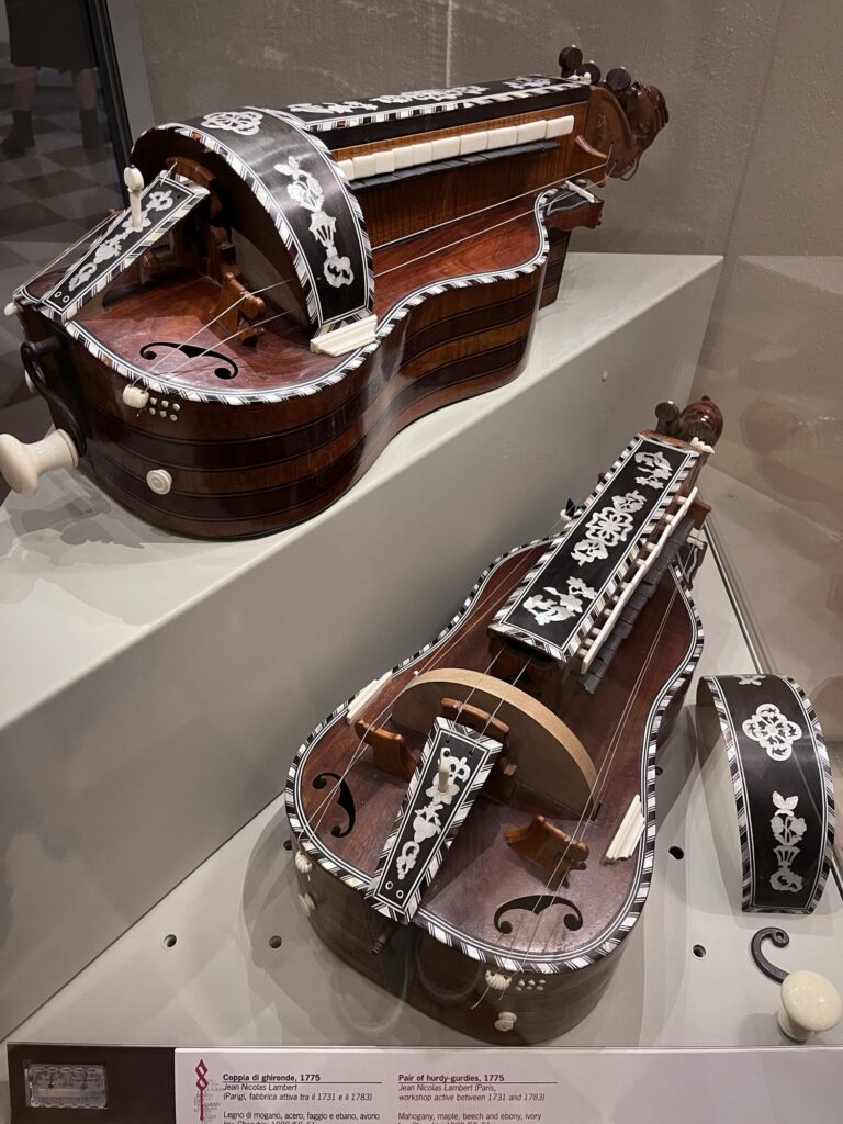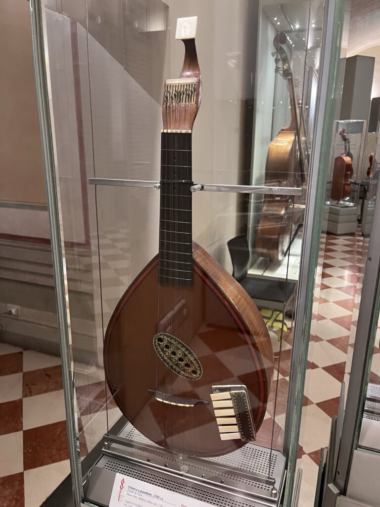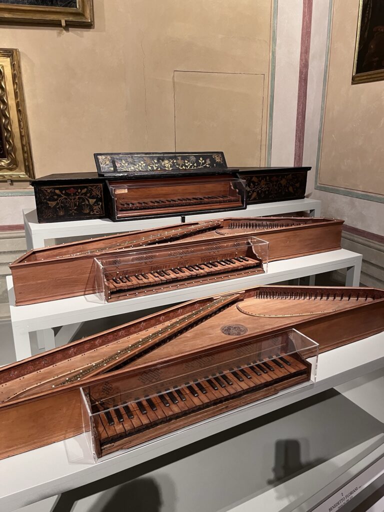 As the tour groups started to file in, we went back to the beginning of the museum. Following a somewhat inconspicuous sign down a hallway away from the main galleries, we found an exhibit of Renaissance instruments that was really interesting. The collection belonging to the Luigi Cherubini Conservatory had about 50 instruments, including several Stradivarius violins, cellos, and a viola. There was also a room of piano ancestors and variations in shapes and sizes I had never seen before.